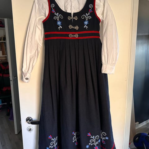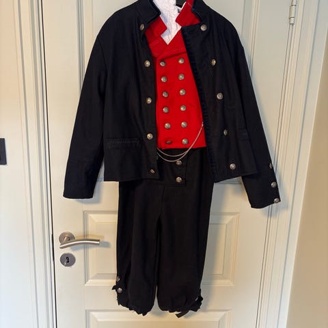Cubus bunadsett for gutt. Skjorte og vest i bomull, underdel i ull og videoer. Underdel str 128/134, det samme med vesten. Skjorta er k str. q34/140. Sett består av hvit skjorte, rød vest med dekorative knapper og sorte knebukser. Flerfarget helhet med tradisjonspreget design. Egnet til bruk ved høytider, konfirmasjon, 17. mai eller andre anledninger der bunadsinspirert antrekk ønskes. Selges samlet som sett 500kr