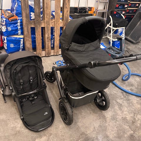 Emmaljunga liggedel. Svart farge. Kjøpt i 21/22 men nesten ikke brukt da vi gikk over til sittedel.
