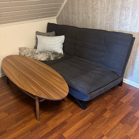 Selger en pent brukt grå 3-seters Regata sovesofa med oppbevaring under