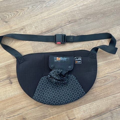 BeSafe gravidbelte i svart. Beltet festes i bilens setebelte og er utviklet for å lede hoftebeltet bort fra magen under bilkjøring. Passer gravide som ønsker å plassere bilbeltet lavere over hoftene for økt komfort. Egnet for bruk i forsetet eller baksetet der det er trepunktsbelte.