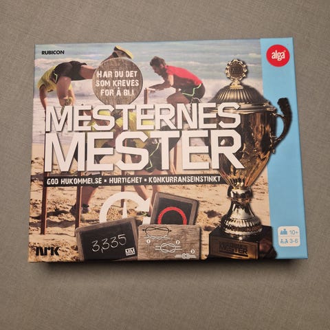NRK Mesterens mester brettspill. Spillet er basert på TV-programmet og inneholder ulike oppgaver og utfordringer inspirert av serien. Egner seg for flere spillere og passer til bruk i hjemmet eller på hytta som et aktivitets- og familiespill.