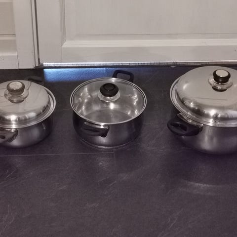 Selger et flott grytesett fra kvalitetsmerket WMF. Laget i rustfritt stål av høy kvalitet. Passer til alle typer komfyrer, inkludert induksjon.