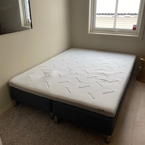 Madrassen er av typen «Fast», som gir veldig god støtte og komfort. Vi har alltid brukt madrassbeskytter, så alt fremstår som rent og pent.