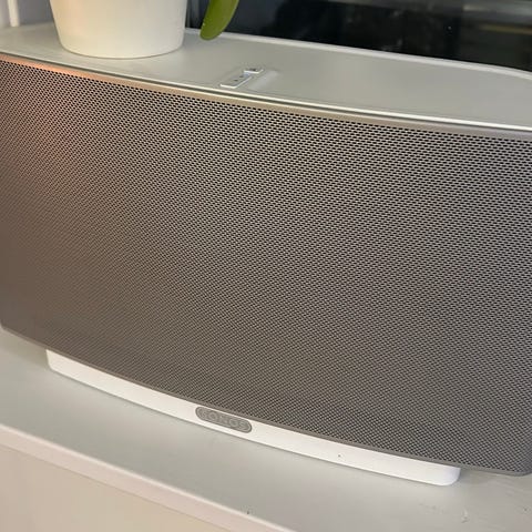 Sonos høyttaler i hvit utførelse. Passer til bruk i stue, kjøkken.Bare kom med spørsmål og om bilder av produktet ikke synlig brukt stått fint i ro men blir ikke brukt. Så fortjener ny eier selger billig