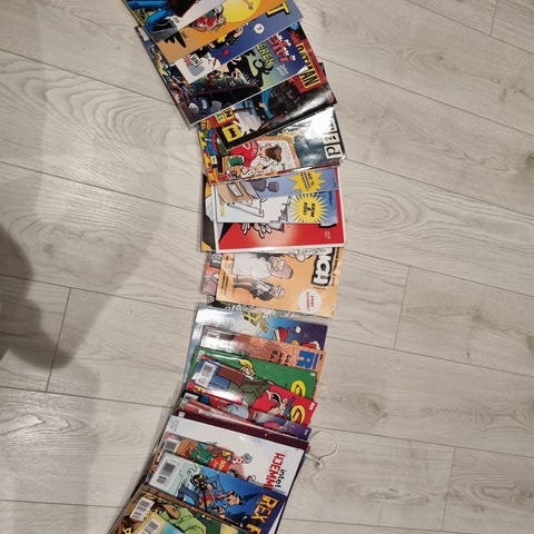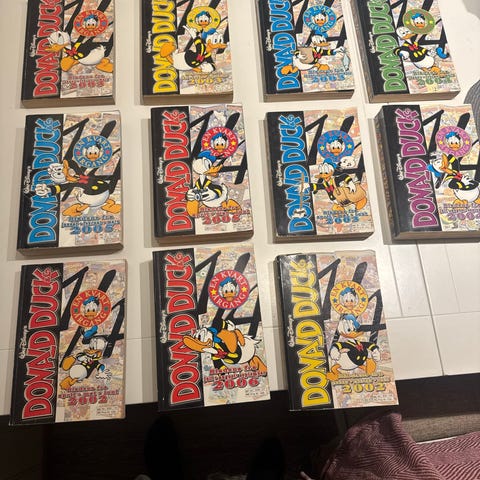 Disney Donald Duck & Co tegneserieblader samling. Flere hefter med fargerike omslag, klassiske Donald Duck-historier og relaterte figurer. Passer for lesing, samling eller som tillegg til eksisterende tegneseriesamling. Antall blader og årganger kan telles og spesifiseres nærmere av selger.