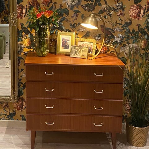 Teak kommode med godt potensial. Trenger litt kjærlighet.