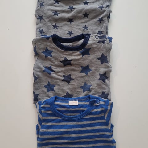 To ullbukser. Den blågrønne er fra Cubus størrelse 74 og nesten ikke brukt. Den grå er fra Janus, størrelse 70 og har et lite hull som vist på bildet. Blå genser størrelse 74/80 som ny. Grønn genser størrelse 86, ikke synlig brukt.