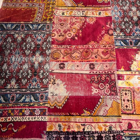 IKEA teppe med orientalsk inspirert mønster. Teppeflaten har rød bunnfarge med sentralt medaljongmønster og detaljer i beige, krem og mørke kontrastfarger. Ytre bord har lys/beige bakgrunn med gjennomgående blomster- og rankemønster. Rektangulær fasong, egnet som gulvteppe i stue, spisestue eller soverom. Materiale og nøyaktig størrelse er ikke oppgitt av selger.