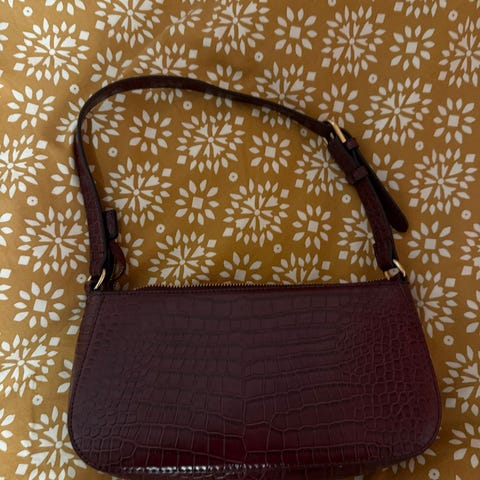 Fekk den som gave av mor men endå ikkje brukt. Den er rød å har søl detlajer på seg. Lite plass men perfekt om du er ute på restaurant eller då du er pyntet
