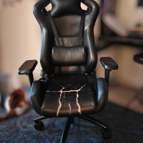 Kjøpt i 2020, er kommet noen merker helt fremme, men merker ikke noe til den når man sitter i stolen.