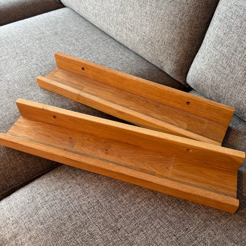Frikk bildehylle fra Bohus. Kjøpt i 2025. Hang fast i malingen på veggen når jeg skrudde den ned, så henger fast litt bakpå, men det vises ikke.