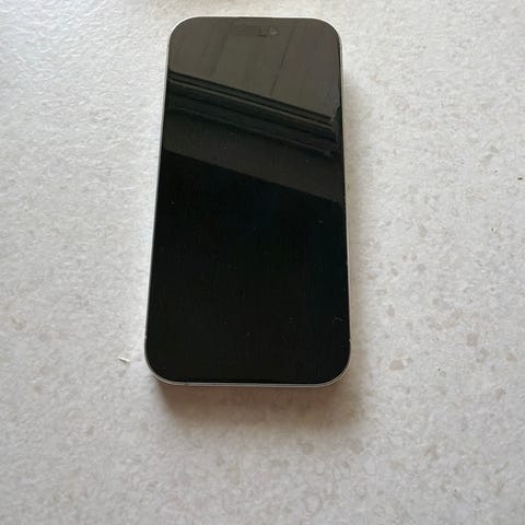 Apple iPhone 14 Pro, 128 GB. Telefonen er i god stand, det er noen små riper på skjermen. Baksiden er fortsatt veldig pen. Batterikapasitet: 84 %.