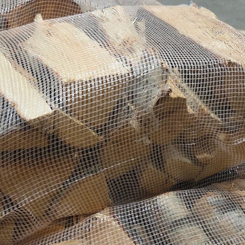 Fin og tørr bjørkeved selges i 40l og 60l sekker.