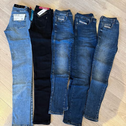To ubrukte bukser i stretch jeans materiale fra Lab og Garcia.