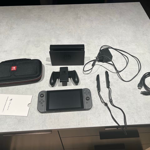 Nintendo Switch konsoll med originalt tilbehør. Pakken inkluderer Nintendo Switch hovedkonsoll, dokkingstasjon for tilkobling til TV, strømadapter, Joy-Con-håndtak, håndleddsreimer og bæreveske. I tillegg følger treningsspillet Ring Fit Adventure med ringkontroller og beinreim til Nintendo Switch. Egnet for både håndholdt spilling og bruk koblet til TV, samt trenings- og aktivitetsbaserte spill med Ring Fit-tilbehøret