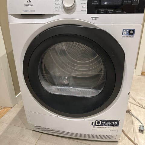 Electrolux kondenstørketrommel 8 kg med varmepumpe. Enkel i bruk, elektronisk display og flere programmer. Trenger ikke lufting ut – samler vann i beholder. Fungerer som den skal.