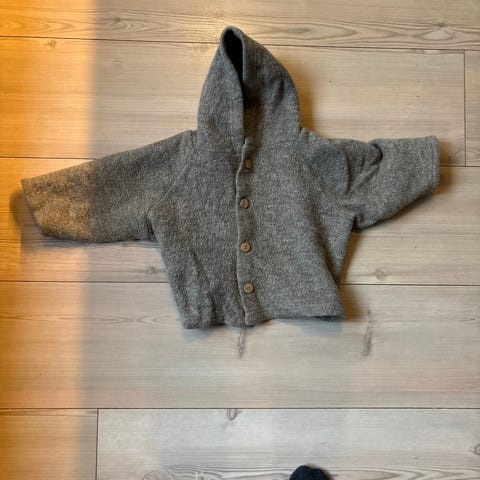 Nøstebarn jakke i størrelse 74/80, i nydelig blå farge. Varm, myk og god. Nesten ikke brukt, i veldig god stand.
