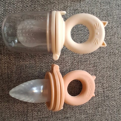 Smokkmatmater for baby med håndtak og flere ekstra silinnsatser. Produktet er egnet for å gi små barn frukt, grønnsaker eller annen myk mat på en trygg måte. Silinnsatsene har små hull som gjør at barnet kan suge og tygge uten å få store biter. Håndtaket er utformet slik at det er lett for barnet å holde selv. Passer til bruk under introduksjon av fast føde og som hjelpemiddel ved tannfrembrudd.