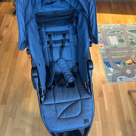Pent brukt sportsvogn som er oppbevart innendørs. Yngri regntrekk følger med. Det er lite luft i dekkene, så de må pumpes opp / bytte slange.