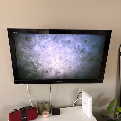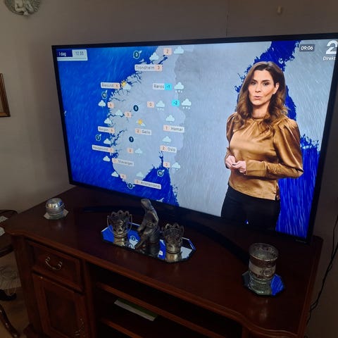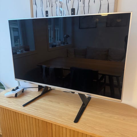 Panasonic TV. Flat skjerm-TV egnet for plassering på bord eller TV-benk. Passer til vanlig TV-titting og tilkobling av eksterne enheter via tilgjengelige innganger på baksiden eller siden av TV-en, avhengig av modell.