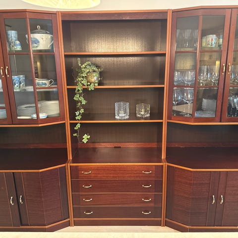Skjenk er 171 bred, 117 høy og 45 dyp (selve skjenken er 40 dyp, men plata øverst er 45 dyp).