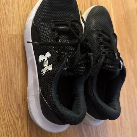 Under Armour løpesko i størrelse 40. Modellen er laget for løping og har overdel i pustende meshmateriale. Skoene er svarte med hvit såle og hvite logoer på sidene. Yttersålen har gummipartier for grep og slitestyrke. Egnet til løping og annen lett trening utendørs og innendørs.
