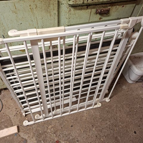 Nederst er det en ekstra liten katte-åpning/dør med egen lås. Egnet som barnegrind eller husdyrgrind for å avgrense områder i hjemmet.