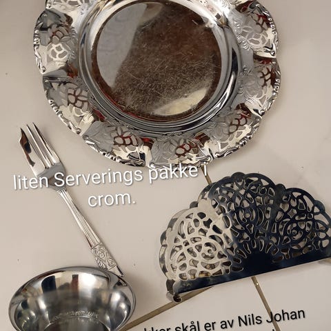 Engelskprodusert eldre krystallskål med sølvplett. Brukes til isbiter/sukkerbiter og anna ein vil dekke opp bordet med.
