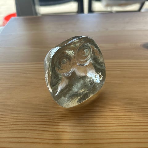 #Glassugle #Dekor #Pynt #Interiør #BlåGlass #Håndlaget #Figur #Ugle #Glasskunst #Nips #Gave #Berg
