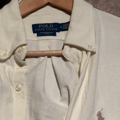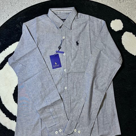 Ralph Lauren Polo skjorte for herre i størrelse M. Skjorten er oransje og laget av bomull. Klassisk modell med krage og knappelukking foran, samt brodert logo på brystet. Passer til både hverdagsbruk og mer formelle anledninger.