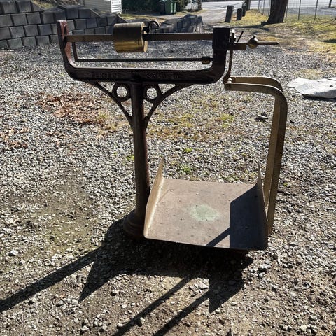 Gammel plattformvekt med sideoppheng