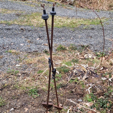 Ukjent merke saueklippesakser i metall. Tradisjonelle, fjærbelastede sakser med to blader, trolig beregnet for klipping av ull på sau eller annet husdyrhold. Passer også som dekorative gjenstander eller samlerobjekter for eldre landbruksredskaper. Farge: metall / rustpatinert.