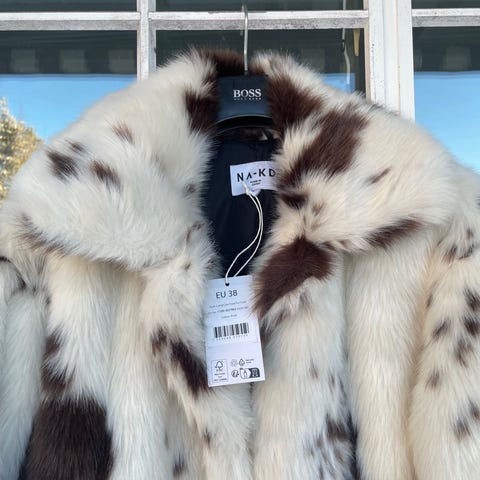NA-KD kåpe i rød fuskepels for dame i størrelse M. Kåpen har myk, pelsaktig overflate og klassisk krage. Lengden går omtrent til over kneet, og innsiden er helfôret i matchende rødfarge. Lukkes med knapper foran. Passer som yttertøy i kjøligere vær.