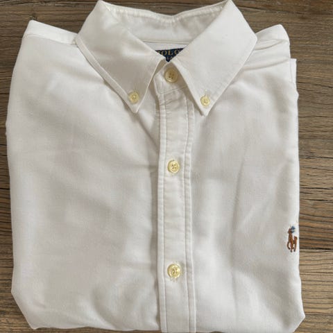 Ralph Lauren Polo skjorte for herre i størrelse L. Skjorten er grønn og laget av bomull. Modellen er slim fit stretch oxford med klassisk krage og knappelukking foran. Brodert logo på brystet. Passer til både hverdagsbruk og mer formelle anledninger.