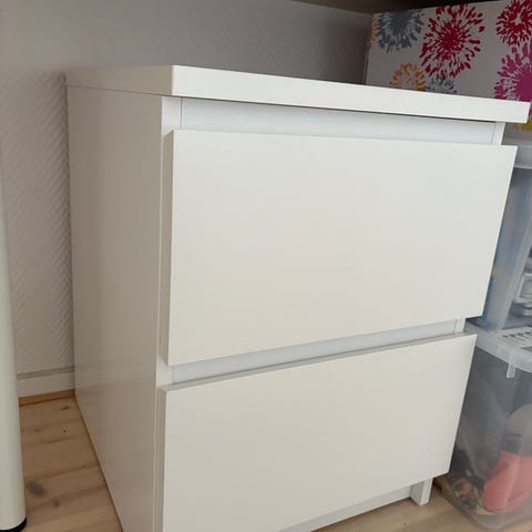Malm kommode fra IKEA gis bort. Noe bruksmerker men de er ikke godt synlig. Liten glippe mellom skuff en og to, men skuffen er hel og solid. Må hentes innen fredag ettermiddag kl 18.