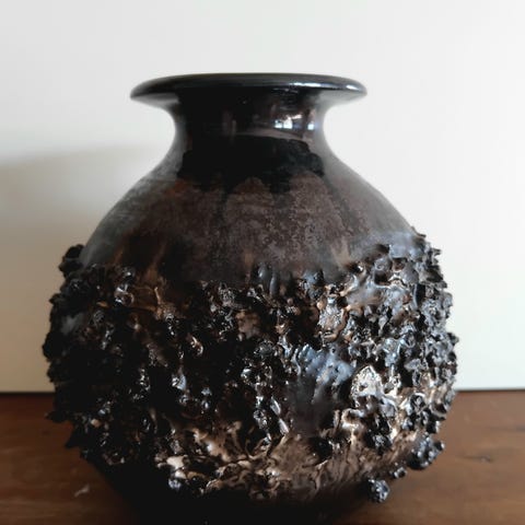 Selger en klassisk og dekorativ keramikkvase fra kjente Jasba Keramik, produsert i det tidligere Vest-Tyskland på 1950-tallet.