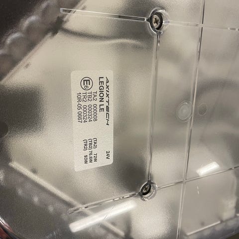 Axixtech LE-TA2 varsellysbjelke for kjøretøy. Modellen er merket LE-TA2 og er beregnet for 12V anlegg med effekt på 122W. Varsellysbjelken har gjennomsiktig/tonet toppdeksel med integrerte lysmoduler langs sidene. Monteringspunkter er plassert på oversiden for feste til takbøyle eller braketter. Egnet som varsellys på kjøretøy der det er behov for tydelig lyssignal, for eksempel utrykningskjøretøy, servicebiler eller arbeidskjøretøy, innenfor gjeldende regelverk.