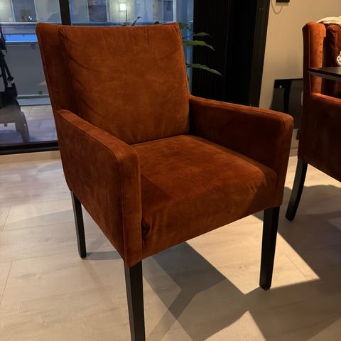Selger 3 pent brukte spisestoler fra sleepo. Kjøpt i sommer 😊 to stoler er helt fine, en av stolene har fått et kakk som er litt synlig. en fjerde stol kan følge med, den har et ødelagt armlene men det kan fikses med lim.