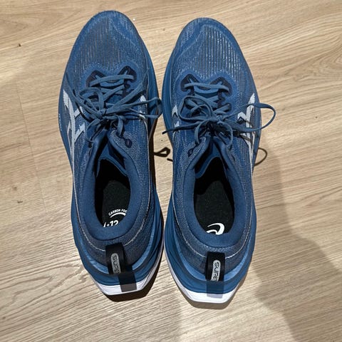Selger et par ASICS Superblast 2 i størrelse 42,5. De er løpt ca. 150 km totalt, hvor en stor del av bruken er på mølle.