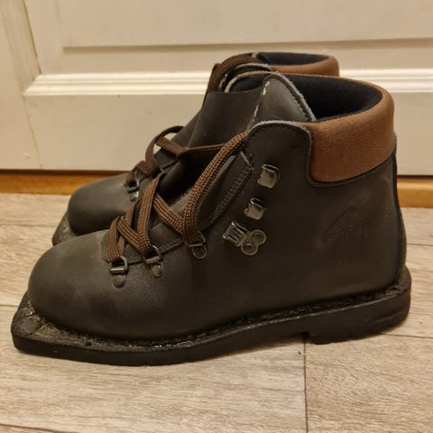 Pent brukte lærstøvler til fjellski str 10, tilsvarer vel str 44-45