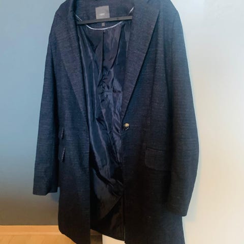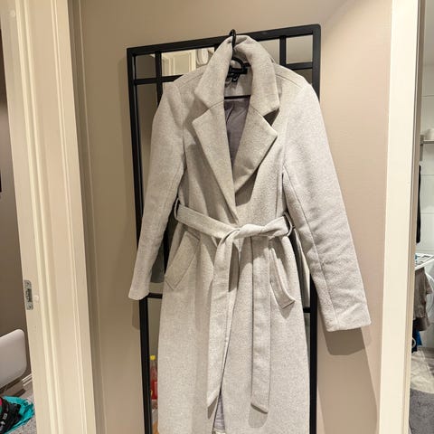 Next halvlang, kåpe for dame i størrelse S. Kåpen er grønn og laget i polyester. Den har dobbeltspent lukking med knapper foran, krage og markert midje. Bak har kåpen en enkel splitt nederst. Innsiden har glatt fôr i kontrastfarge. Egnet som yttertøy i overgangssesonger og milde vinterdager.