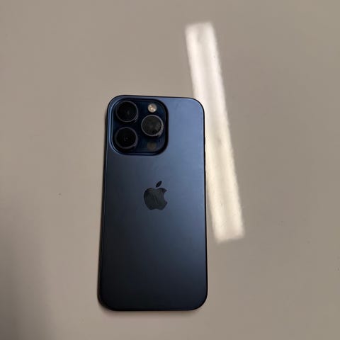 Selger en iPhone 15 128GB i svart farge.