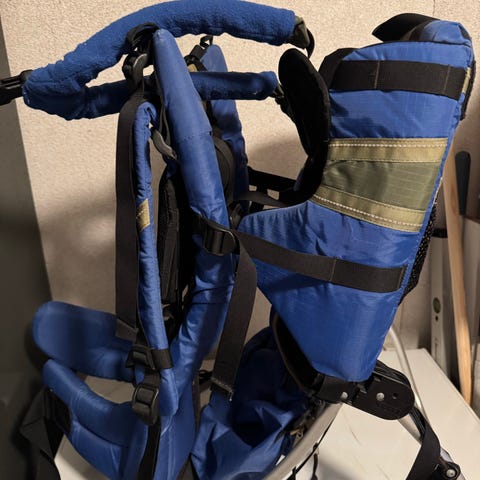 Praktisk og god bæremeis fra Osprey (Poco Premium). Romslige lommer, UPF 50 solskjerm, justerbare stigbøyler til føttene, justerbart ryggpanel til den som skal bære fra XS til L, justerbart hoftebelte, justerbart sete til barnet og mye mer for å sikre en behagelig tur for både barn og bærer. Myk og behagelig å bære med.