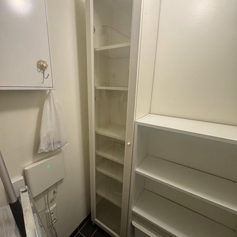 En enkel løsning som vil forvandle den ellers ubrukte plassen over vaskemaskinen til et sted der vaskemidler og rengjøringsutstyr kan oppbevares bak dører.