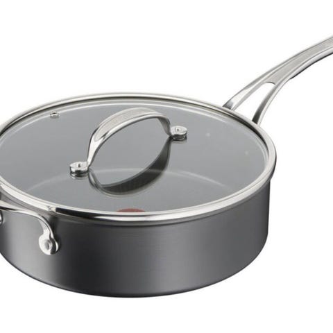 Tefal stekepanne i svart med non-stick belegg og Thermo-Spot i midten som indikerer når pannen er varm. Pannen har lang håndtak i metall og passer til daglig matlaging av for eksempel kjøtt, fisk, grønnsaker og pannekaker. Egnet til bruk på komfyrtopper som er kompatible med Tefal-panner av denne typen.