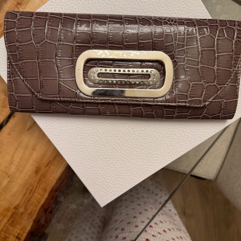 Håndveske for dame i kunstlær i brun farge. Vesken har topphåndtak og klaff med metallspenne foran. Innvendig er det flere rom og lommer som gir mulighet for å organisere mindre eiendeler som mobil, nøkler og lommebok. Passer til hverdagsbruk eller mer formelle anledninger der man ønsker en kompakt veske med strukturert fasong. Selges med skulderrem som gjør det mulig å bære vesken over skulderen