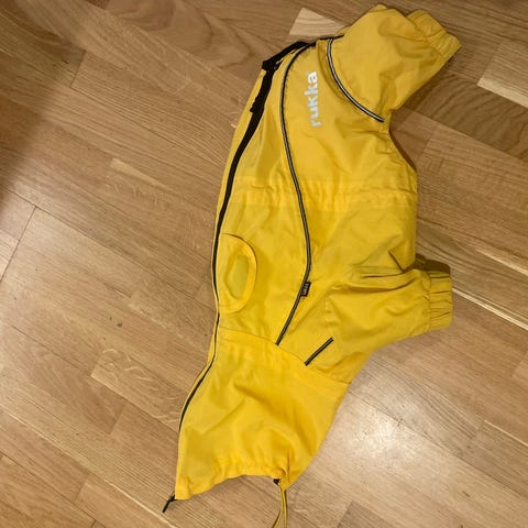 Trine regndress gummiert hundedress i størrelse 50 cm. Regndressen er laget i gummiert materiale og er beregnet for hunder. Fargen er sort. Modellen har korte ben og er utformet slik at den kan brukes både til tisper og hannhunder, med livsnøring som kan spenne opp bukdelen ved behov. Lengdeangivelsen 50 cm viser til rygglengde på hunden fra nakke til halerot, og kan brukes som veiledning for valg av størrelse.