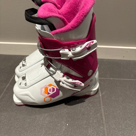 Lange Starlet 50 alpin/slalomsko i mondo 17,5 (231mm). Brukt en håndfull ganger og ser veldig fine ut. Søkeord: Slalomsko barn, alpinsko barn.