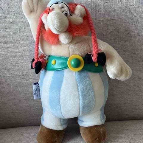 Mummi kosedyr i mykt stoff. Figuren er hvit og har svart hatt med rød bånd. Passer som kosedyr eller pyntegjenstand på barnerom eller i stue. Basert på Mummitroll-figuren fra Mummiverdenen. Kan sendes mot porto