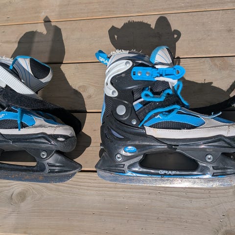 Skøytene har polstret ankelparti og høy skaft for støtte rundt fot og ankel.